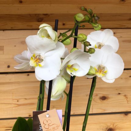 Orchidea bianca multiramificata di straordinaria eleganza. Questa varietà presenta numerosi rami che si sviluppano in armonia, creando una composizione floreale