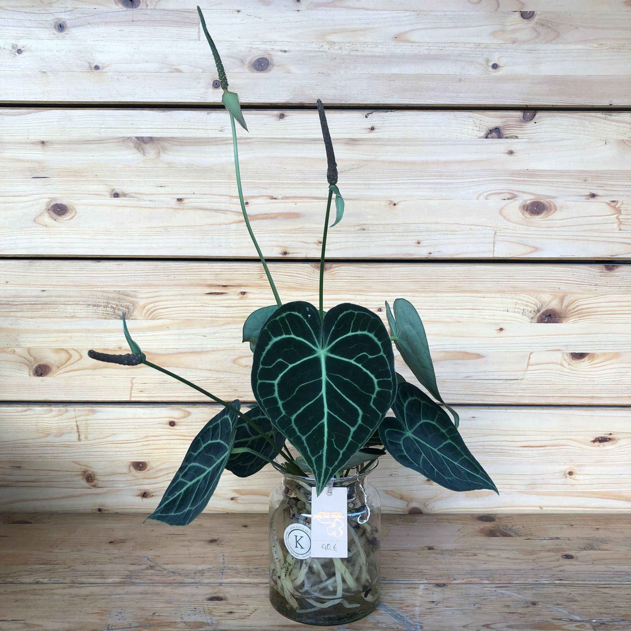 Idroponico: Senza bisogno di terra, l’Anturium Clarinerium prospera semplicemente in acqua, rendendolo pulito e facile da curare.