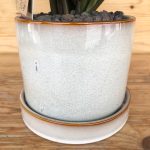 Design Moderno e Raffinato: Questa pianta affascinante si eleva su un vaso di ceramica lucida, esaltando la sua presenza con una nota di lusso e modernità. Il contrasto tra la texture naturale delle foglie e la superficie lucida del vaso crea un equilibrio visivo che cattura l’attenzione e arricchisce qualsiasi spazio.