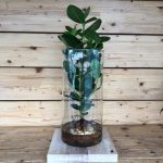 Design Raffinato e Moderno: La Clusia è alloggiata in un elegante cilindro di vetro che mette in risalto le sue radici, creando un affascinante contrasto con la base in legno naturale. Questo design minimalista e contemporaneo si adatta perfettamente a qualsiasi spazio, dall’ufficio moderno alla casa accogliente, aggiungendo un tocco di raffinatezza e tranquillità.