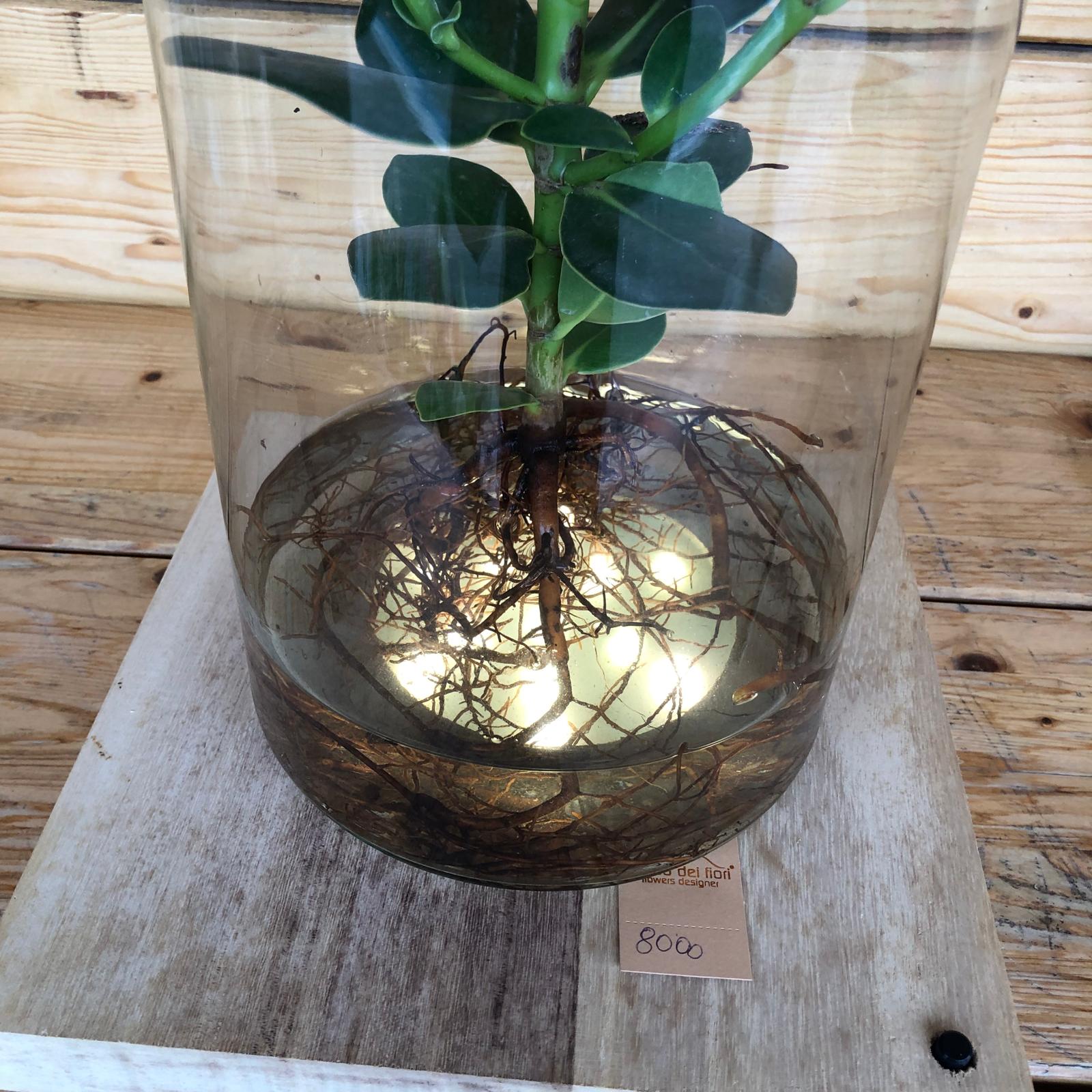 🌿 Eleganza e Innovazione in Armonia: Clusia Idroponica in Cilindro di Vetro con Base in Legno e LED Integrato 🌿