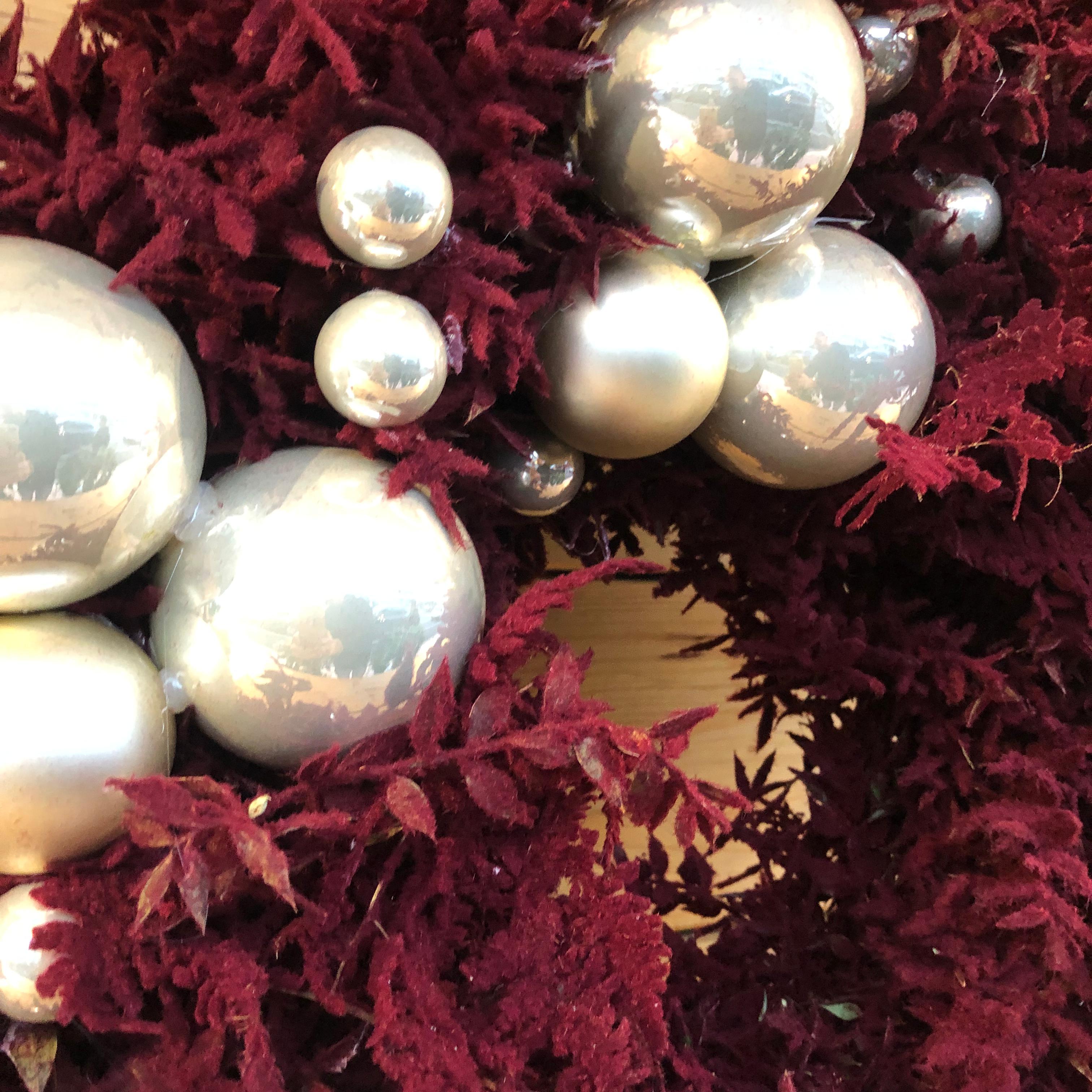 Aggiungi un tocco di raffinatezza alle tue decorazioni natalizie con la nostra esclusiva ghirlanda d’appoggio. Realizzata a mano, questa corona  è un capolavoro artigianale che unisce bellezza e tradizione. Il colore bordeaux profondo conferisce un aspetto caldo e festoso, perfetto per celebrare la stagione delle feste. Le palline decorative in panna, lucide ed opache, aggiungono un tocco di eleganza e brillantezza, creando un contrasto affascinante e sofisticato.