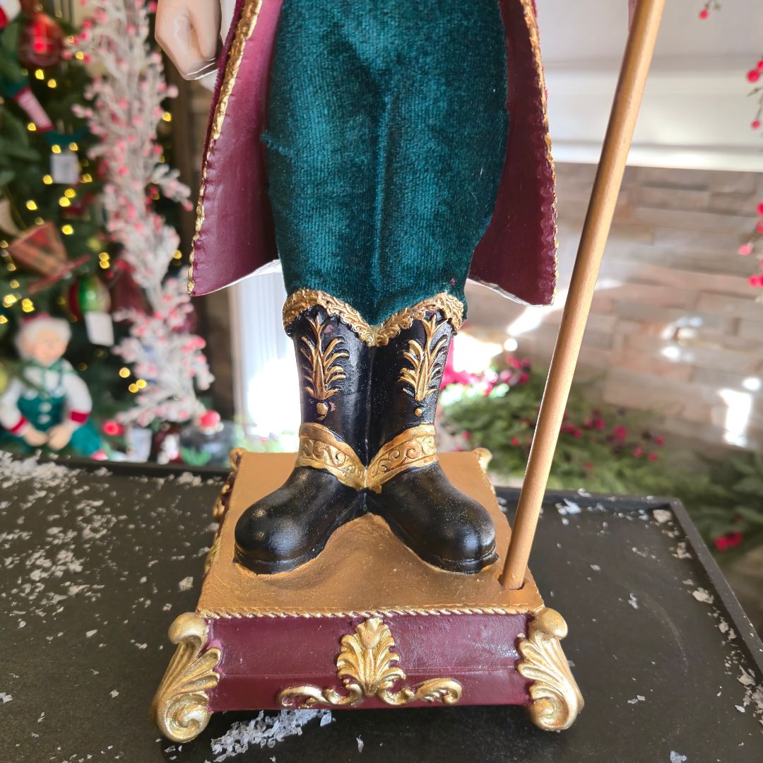 Aggiungi un tocco di regalità e coraggio alle tue decorazioni con il nostro imponente soldato reale. Questo magnifico soldato è progettato con una cura meticolosa ai dettagli, indossando un’uniforme che combina i colori oro, bordeaux e verde, simboli di nobiltà e tradizione.