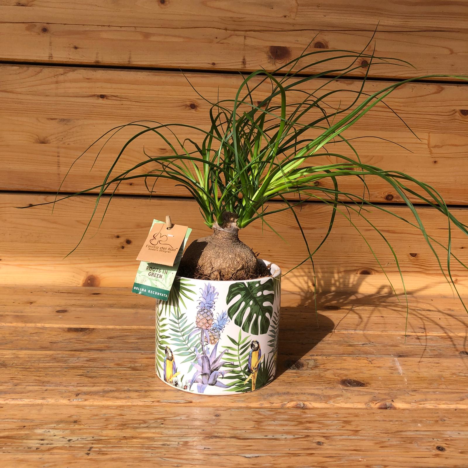 Una piccola mangiafumo in un vaso dallo stile tropical