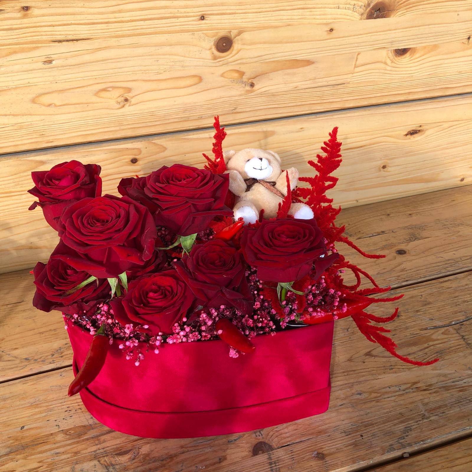 In un giorno speciale come San Valentino stupisci la tua lei con un gesto d’amore e autentico con questa meravigliosa scatola rossa al cui interno troverete meravigliose rose rosse fresche che rappresentano la passione, un tenero teddy, della dolcissima cioccolata…un vero mix di emozioni…