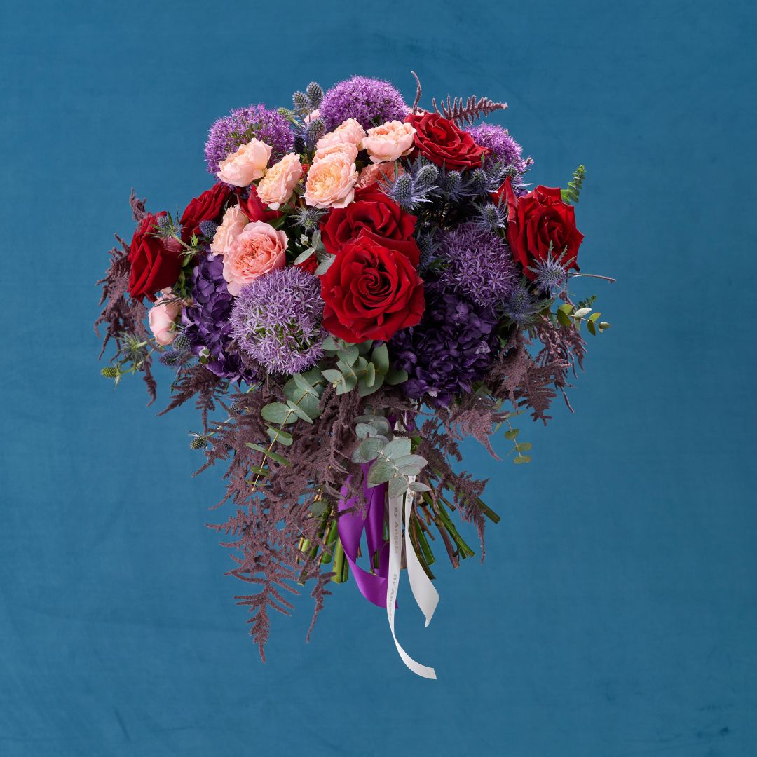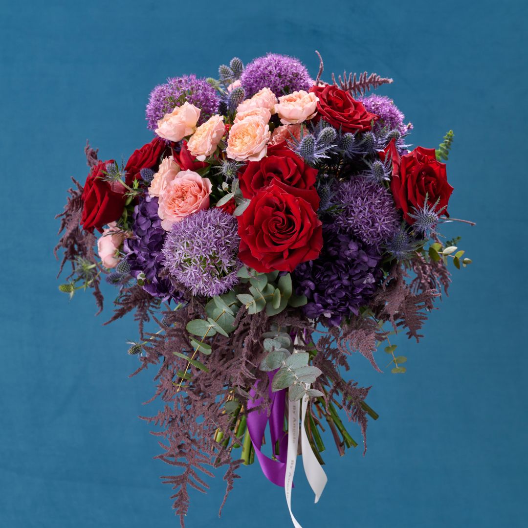 Questo bouquet misto è un’esplosione di colori e profumi. Questo mazzo include una varietà di rose, ortensie, allium, roselline a grappolo e erbe particolari. Regala questo bouquet a chi vuoi far sentire speciale e apprezzato per la sua unicità.