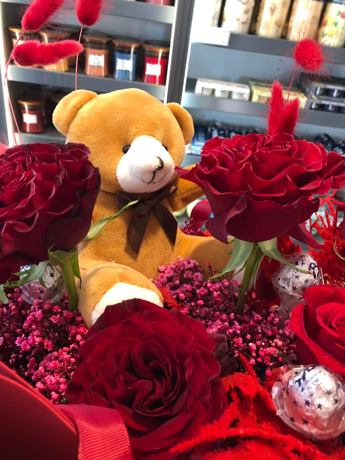In un giorno speciale come San Valentino stupisci la tua lei con un gesto d’amore e autentico con questa meravigliosa scatola rossa al cui interno troverete meravigliose rose rosse fresche, cuori, un tenerissimo teddy e dei dolcissimi cioccolatini.