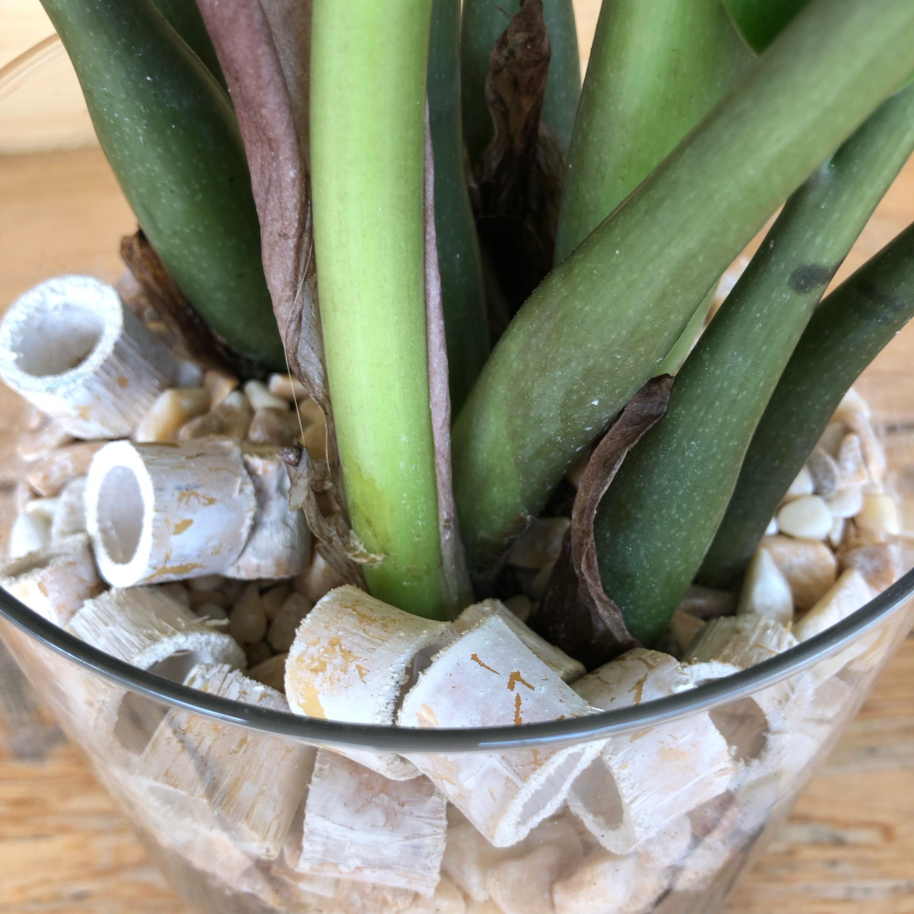 Alla base, decorazioni in legno accuratamente posizionate creano un contrasto visivo caldo e armonioso, evocando la bellezza dei paesaggi naturali. Questa combinazione unica rende la Zamia in vetro non solo un complemento d’arredo, ma un vero elemento di design capace di raccontare una storia.